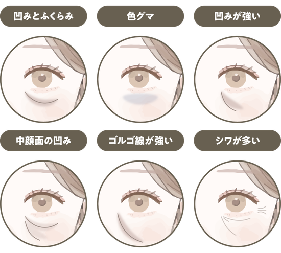 下まぶたの膨らみ(目袋)とくぼみ(クマ)の両方が気になる方。