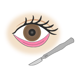 目の下の余分な皮膚のたるみと脂肪を切除することで、目の下のしわ、たるみ、クマなどの症状を改善させる施術方法です。