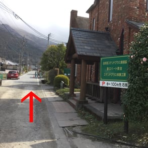 ⑦津江の中道通り「由布院ステンドグラス美術館」さんをまっすぐ進みます。
