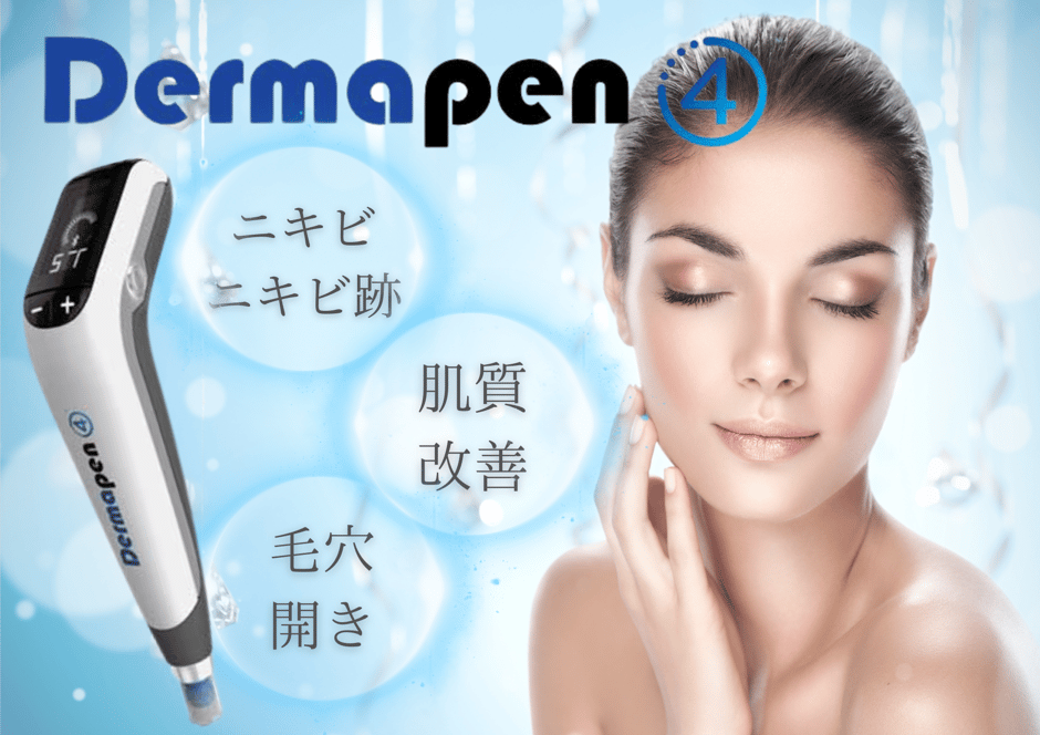 ダーマペン4は、髪の毛よりも細い極細針で表皮〜真皮層に小さな穴を開けることで、肌の再生能力を引き出し、肌質改善を促す再生治療です。創傷治癒の過程で、コラーゲンやエラスチンが再生・増殖し、毛穴・ニキビ跡・小じわ・たるみ・妊娠線・薄毛などの改善に効果を発揮します。治療を重ねるごとに、艶のある滑らかな肌に導きます。従来のダーマペンと比べて針の本数も12本から16本に増え、バイブレーション機能も向上し治療時間の短縮や痛みの軽減、ダウンタイムも少なくなり美肌効果もUPしています。