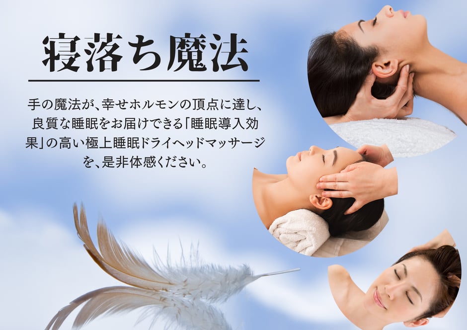 脳に一番近い頭部から心地よい刺激を与えるドライヘッドマッサージは、脳に癒しを与え、深い眠りを導き、心身ともに健康を取り戻します。施術後は、視界が明るくなり、頭もすっきりと爽快感に満たされます。